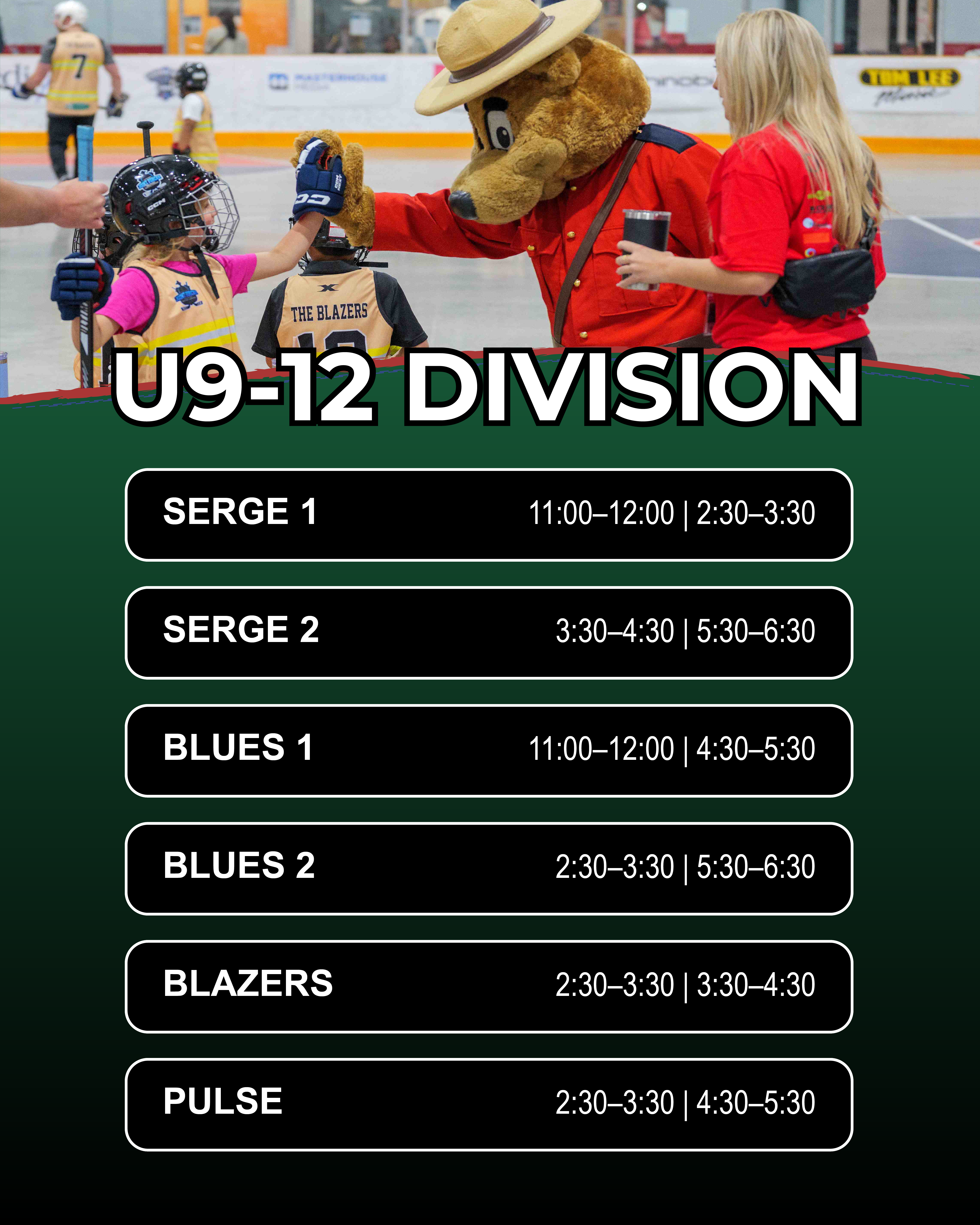 ✔ Each team is coached by a JR. Hockey Player